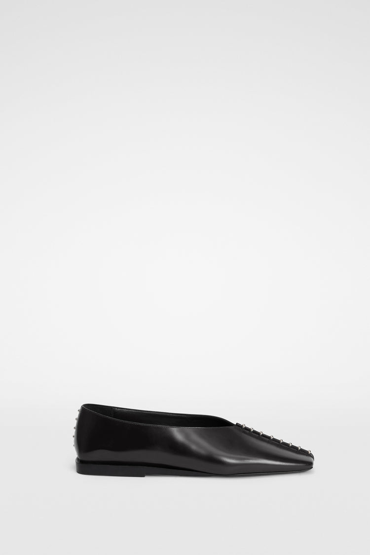 Squared-toe leather ballerina with studs on upper and back