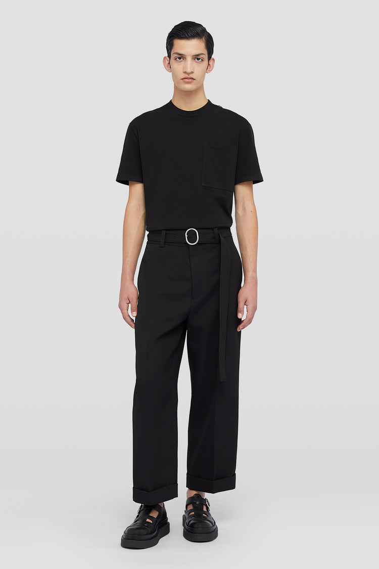 Short-sleeved compact cotton jersey t-shirt with Jil Sander logo tag on the shoulder and chest patch pocket
