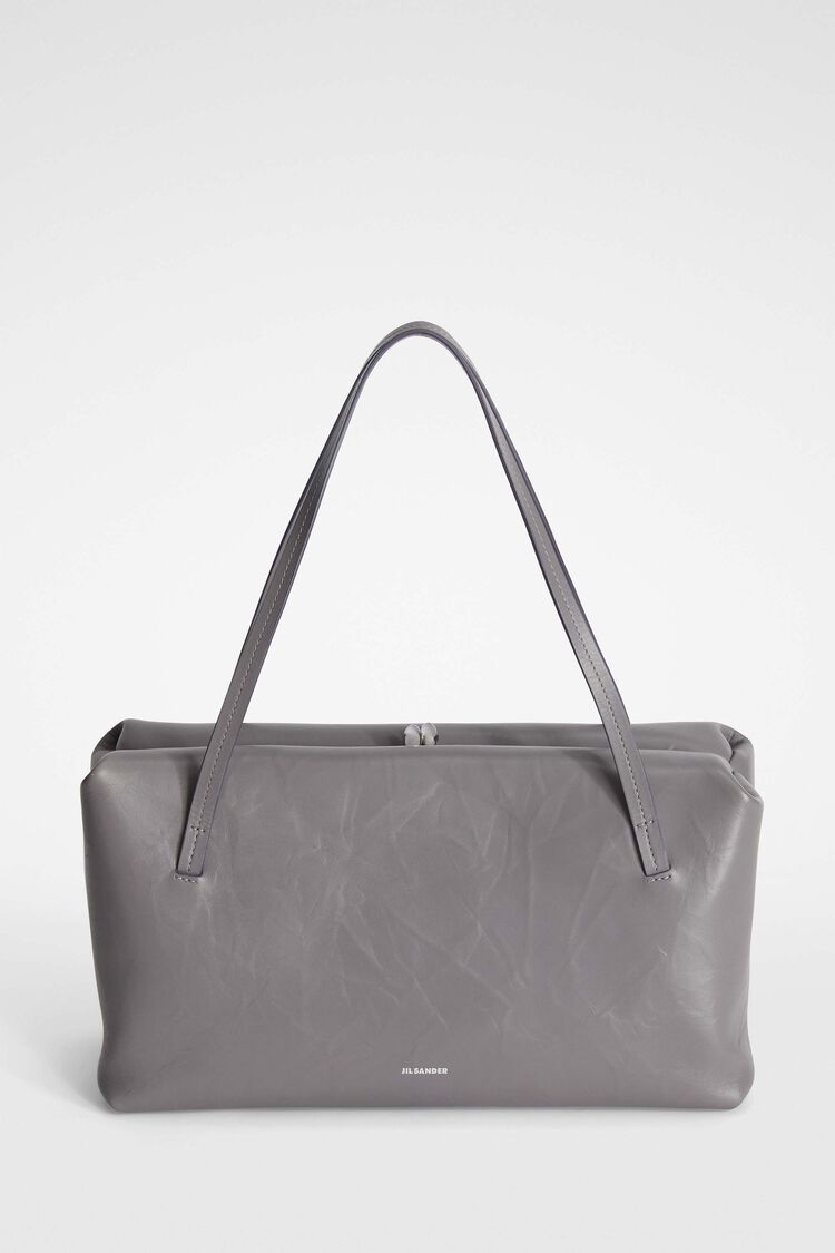 Medium-sized leather shoulder bag with metal frame and embossed Jil Sander logo