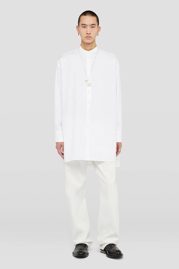 Long organic cotton poplin shirt with embroidered Jil Sander logo