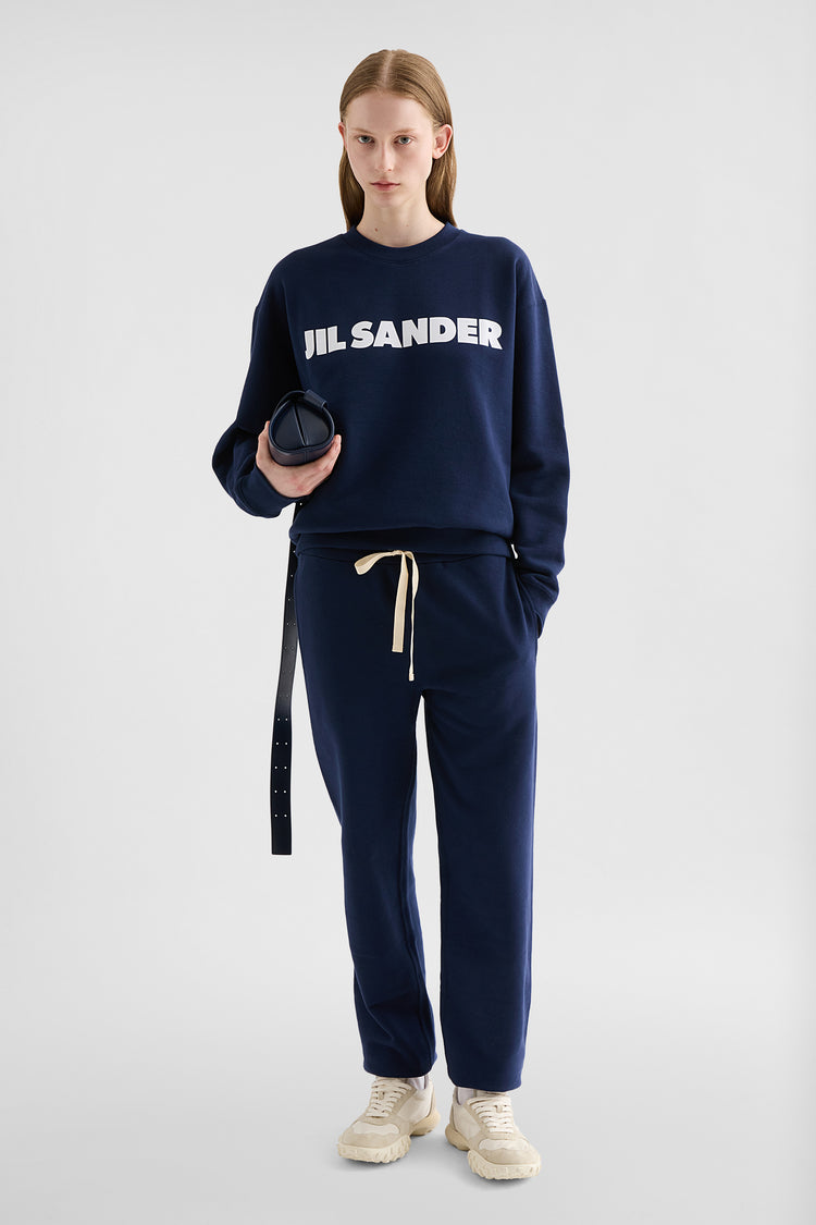 سويتشيرت من قطن تيري مصمم بأكمام طويلة وشعار جيل ساندر مطبوع