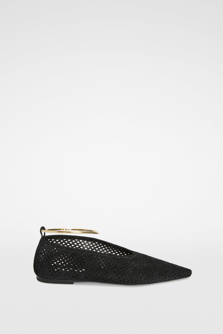 Perforated suede ballerina with pointed toe and detachable metal anklet