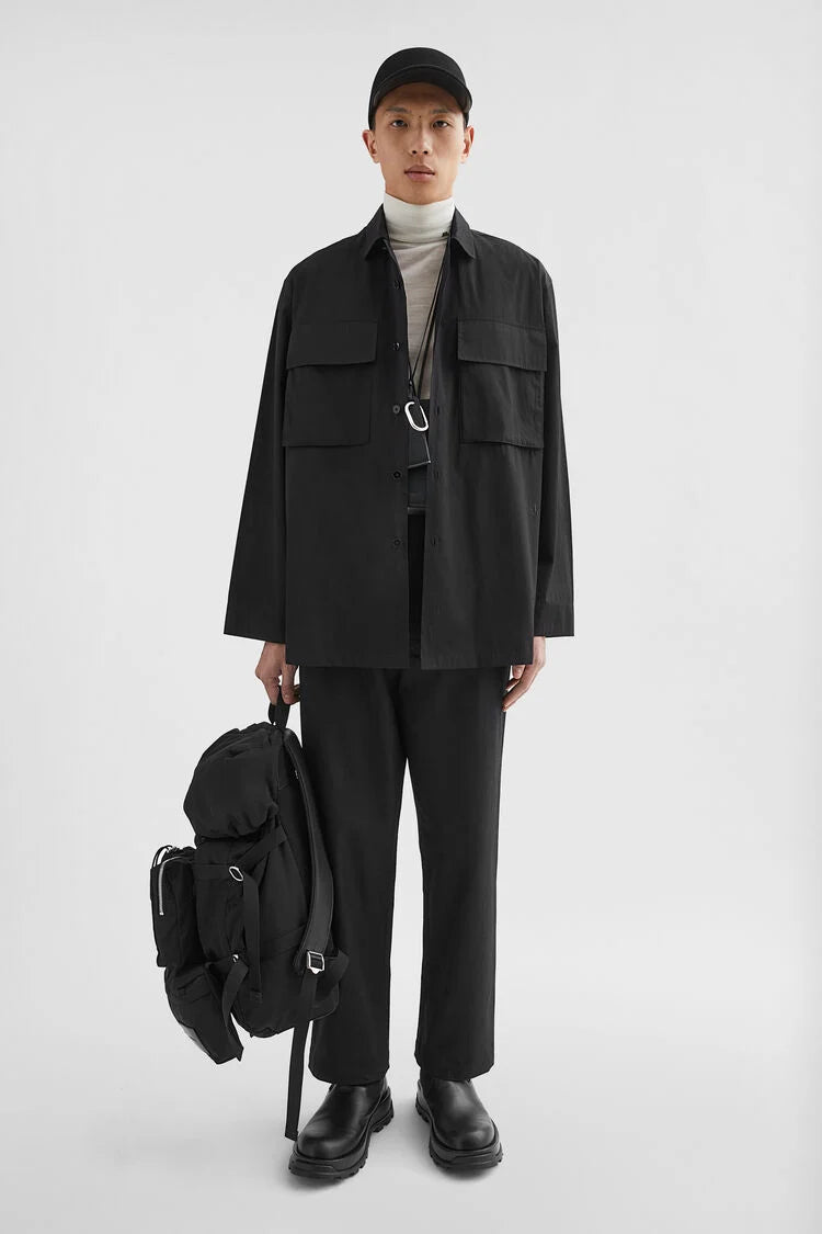 Long-sleeved cotton poplin shirt with front patch pockets and embroidered Jil Sander+ monogram
