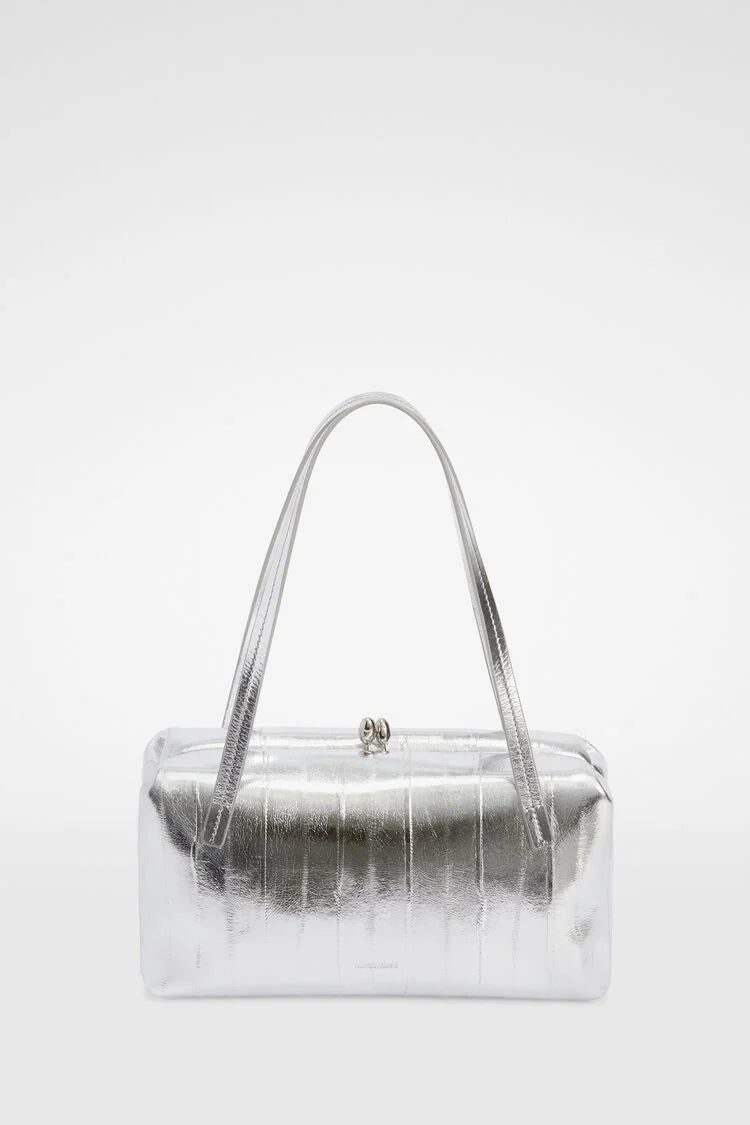 Small-sized metallic leather shoulder bag with metal frame and embossed Jil Sander logo