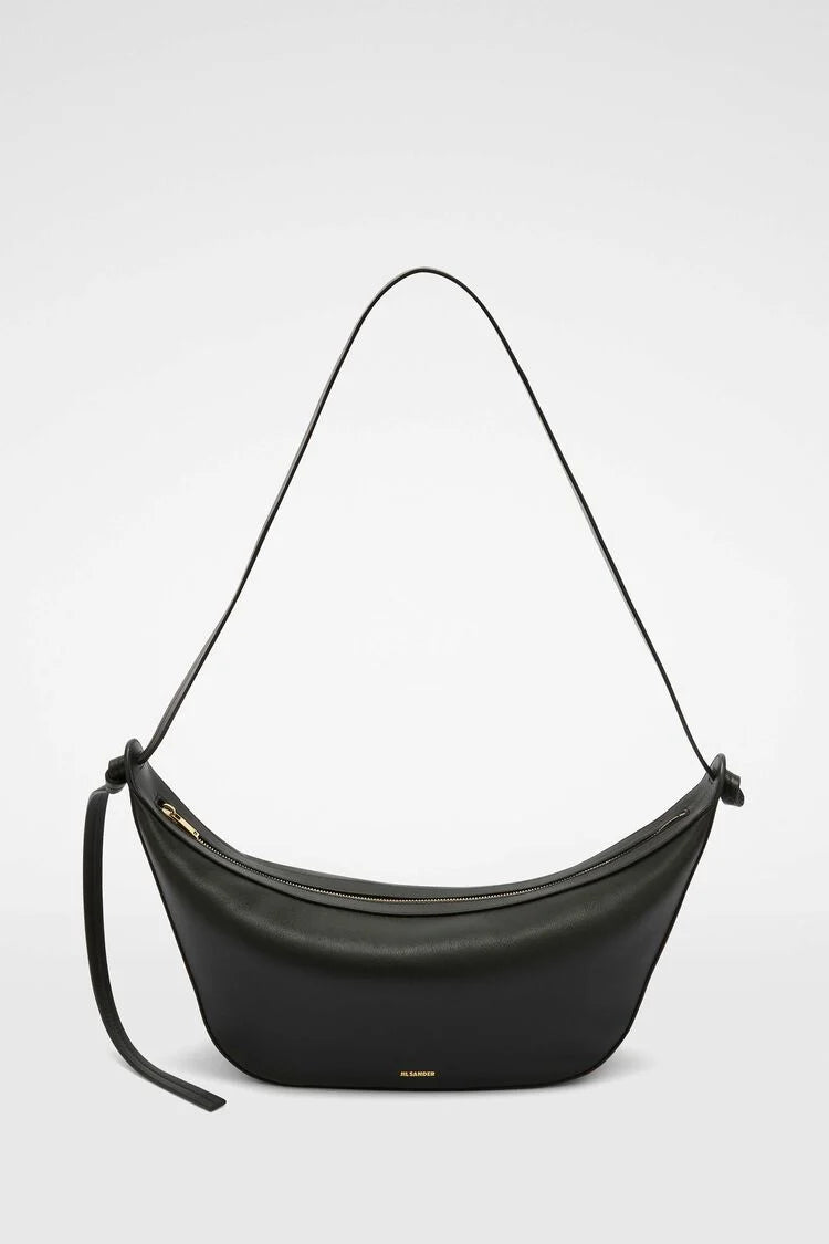 Leather crossbody bag with knotted strap and embossed Jil Sander logo