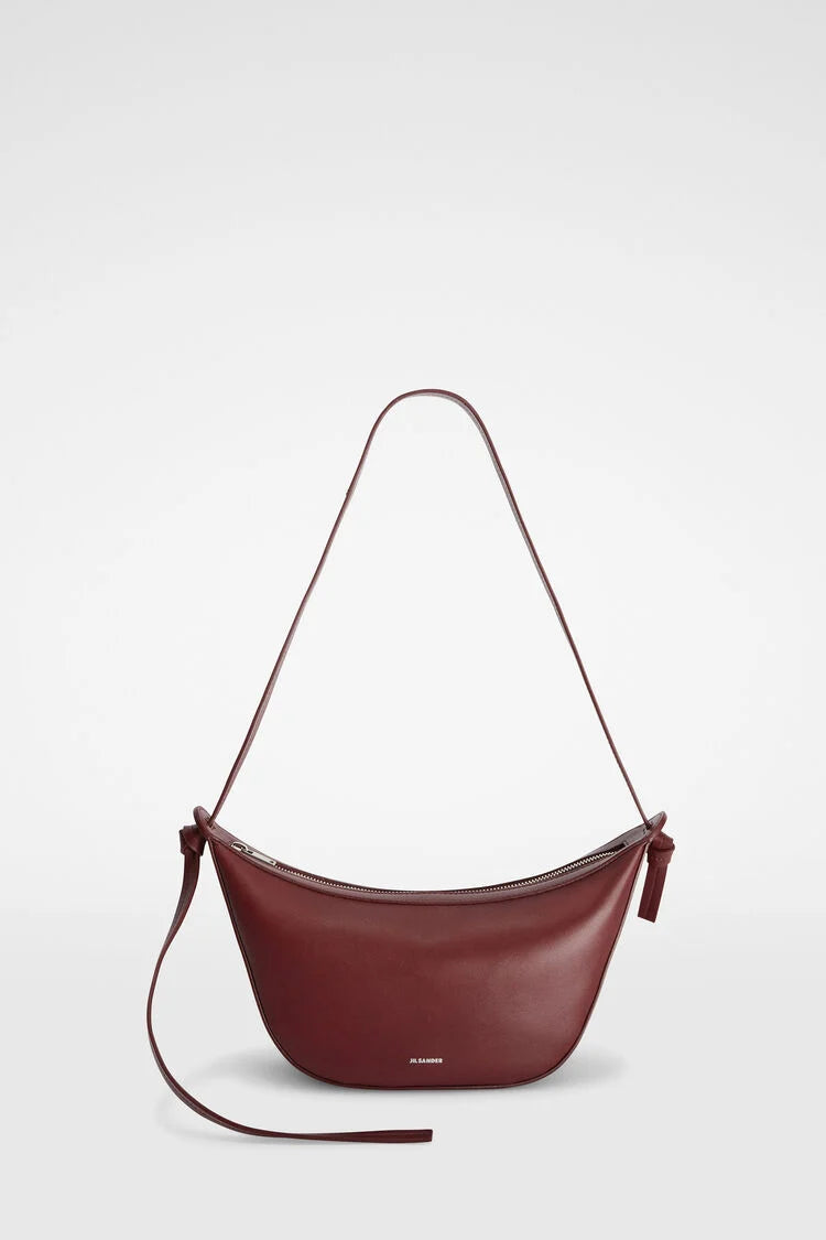 Small-sized leather crossbody bag with knotted strap and embossed Jil Sander logo
