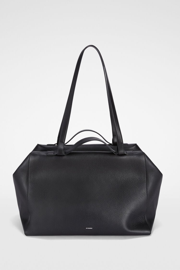 Soft grained leather duffle bag with four handles and embossed Jil Sander logo