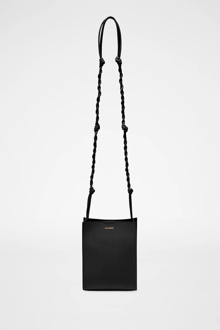 Small-sized leather shoulder and crossbody bag with hand-knotted strap and embossed Jil Sander logo