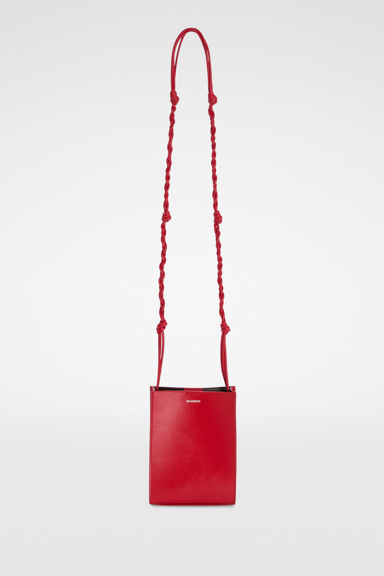 Small-sized leather shoulder and crossbody bag with hand-knotted strap and embossed Jil Sander logo