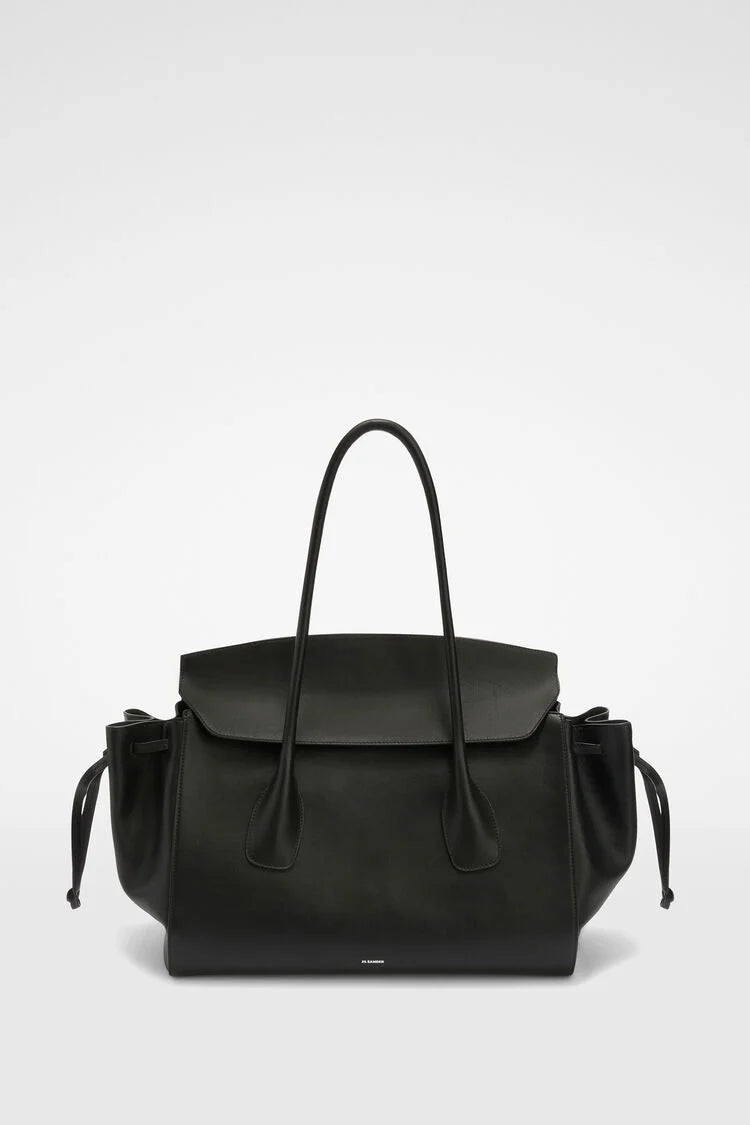 Medium-sized leather handbag with adjustable volume side inserts and embossed Jil Sander logo